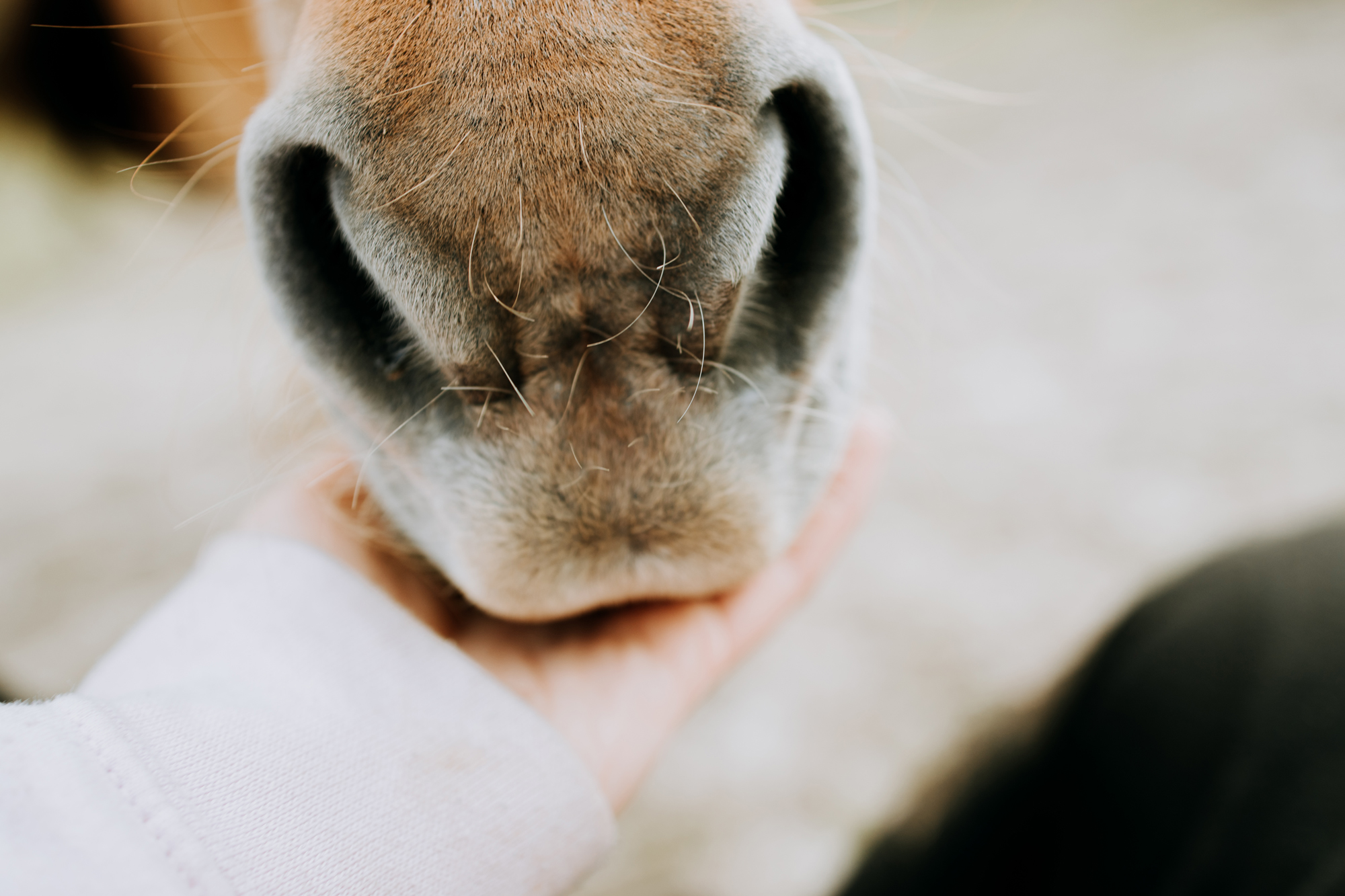 Toen Arabella werd geadopteerd door Vicky, was ze zwaar hoefbevangen en kon ze niet meer opstaan. Ze blijft heel gevoelig voor hoefbevangenheid en heeft de ziekte van Cushing waar ze dagelijks medicatie voor krijgt.